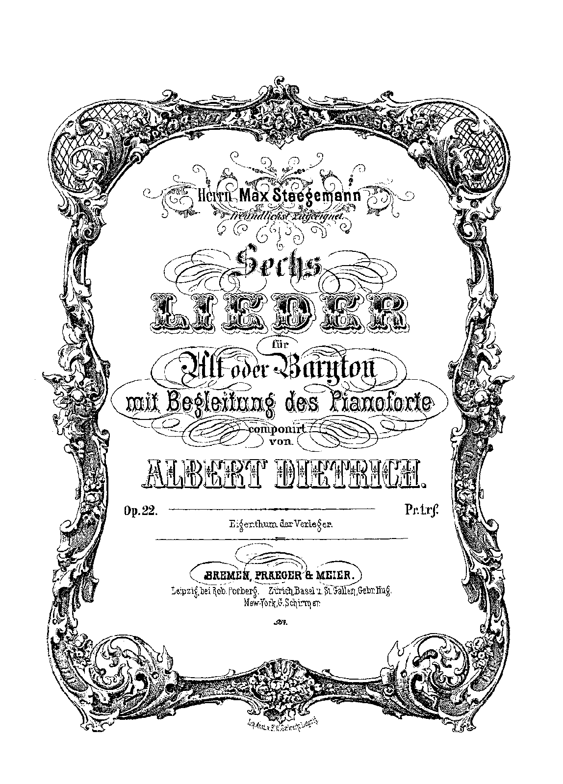 | Alternative. Title | Sechs Lieder für Alt oder Baryton mit Begleitung des Pianoforte |