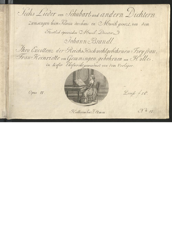 | Alternative. Title | Sechs Lieder von Schubart und andern Dichtern zum singen beim Klavier durchaus in Musik gesezt |