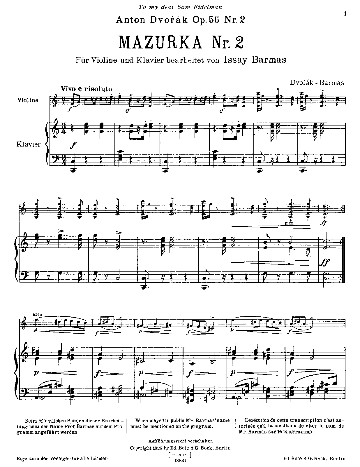 Publisher. Info. Berlin: Bote & Bock, 1920. Plate 18831.
