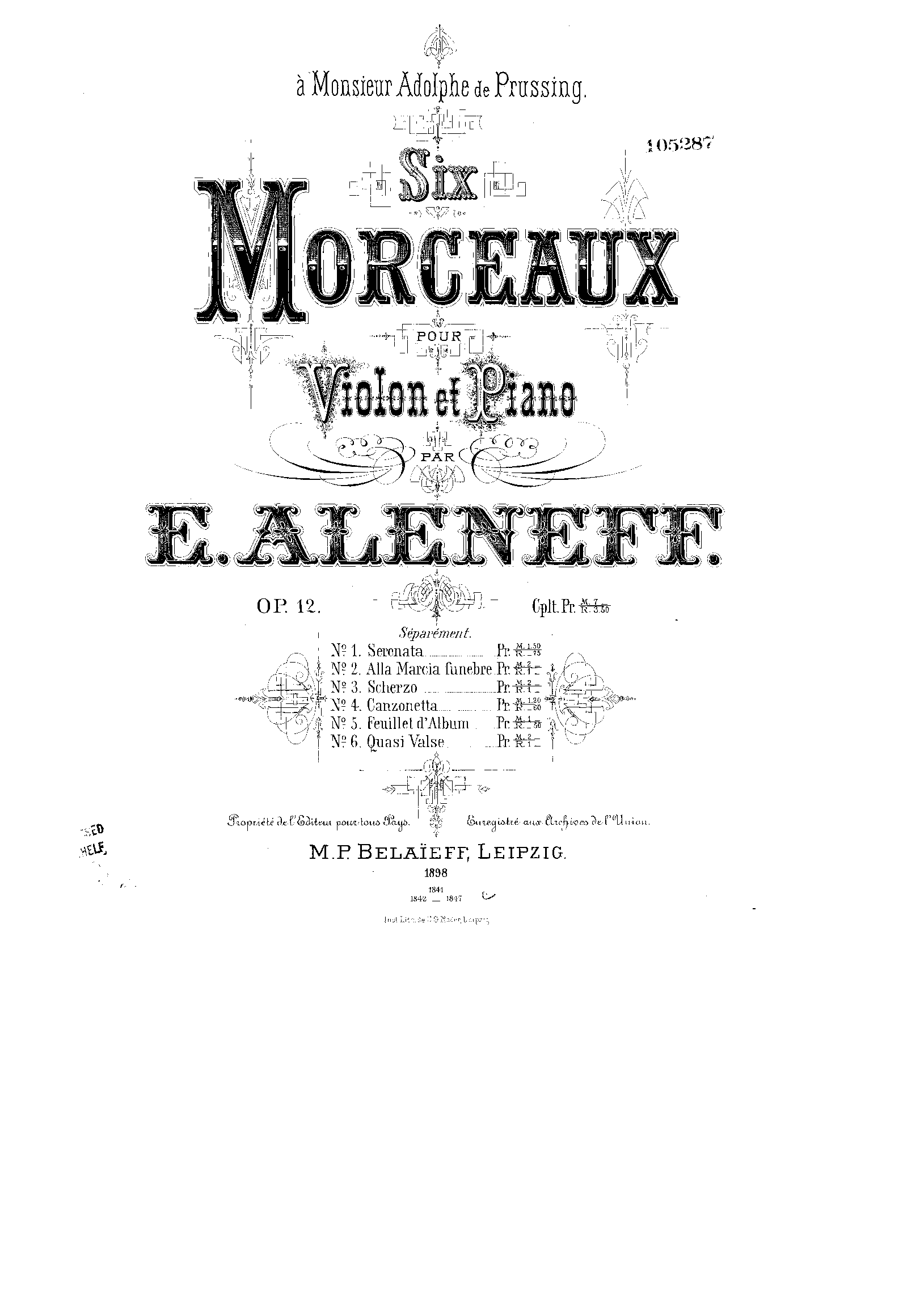 | Genre Categories | Pieces; For violin, piano; Scores featuring the violin; |