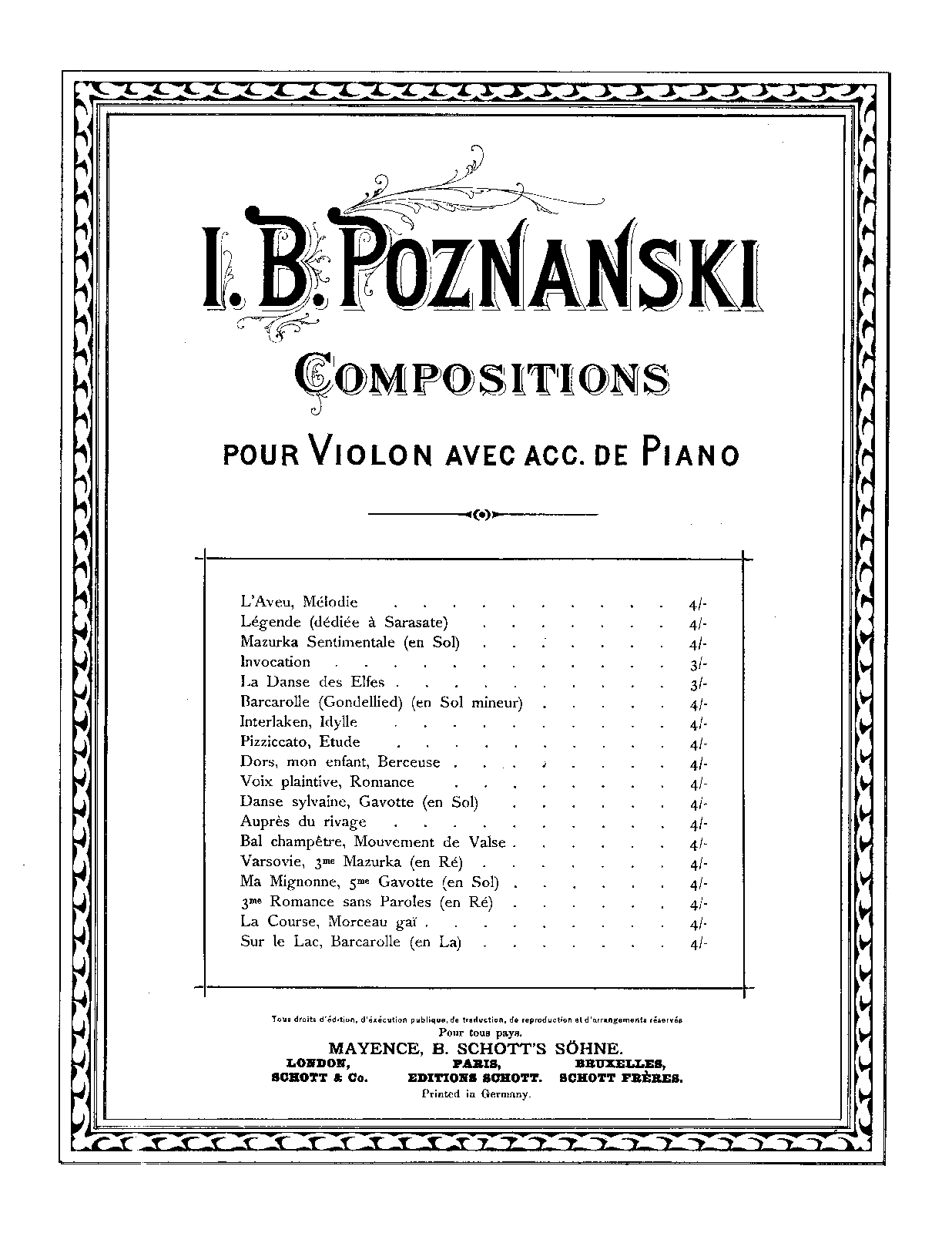 | Genre Categories | Pieces; For violin, piano; Scores featuring the violin; |