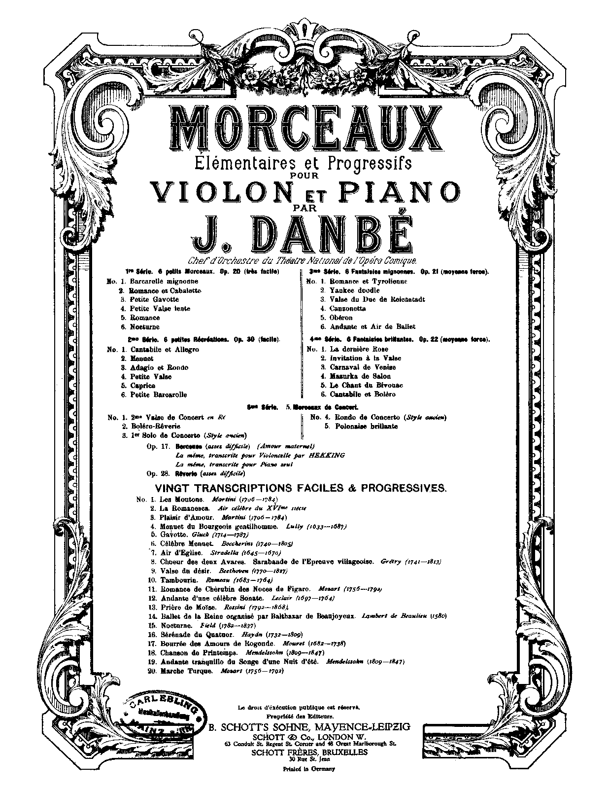 | Genre Categories | Pieces; For violin, piano; Scores featuring the violin; |