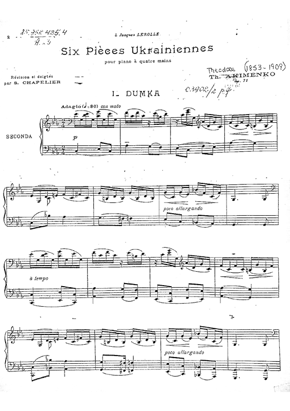 | Work Title | 6 Pièces ukrainiennes pour piano à quatre mains |
