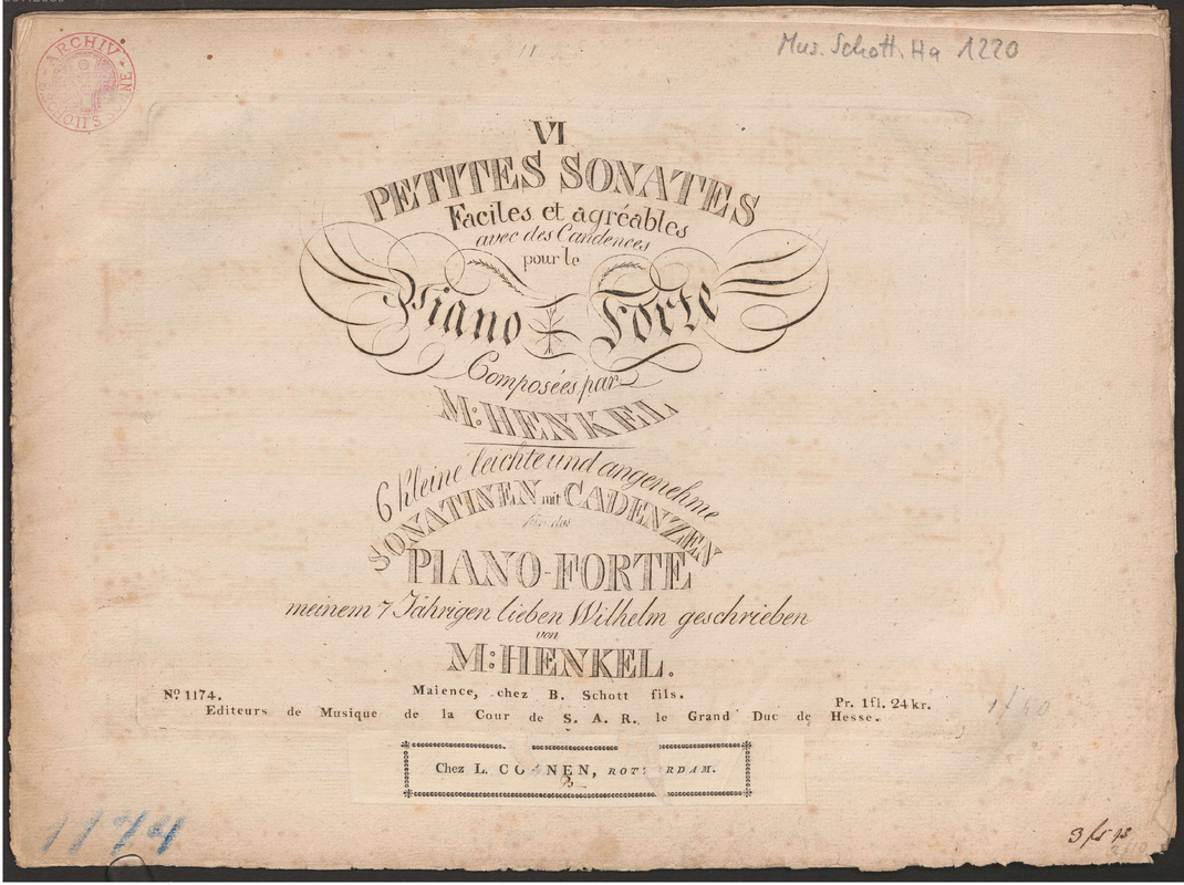 | Alternative. Title | VI petites sonates faciles et agréables avec des candences [sic] pour le Piano Forte; 6 kleine leichte und angenehme Sonatinen mit Cadenzen für das Piano-Forte |