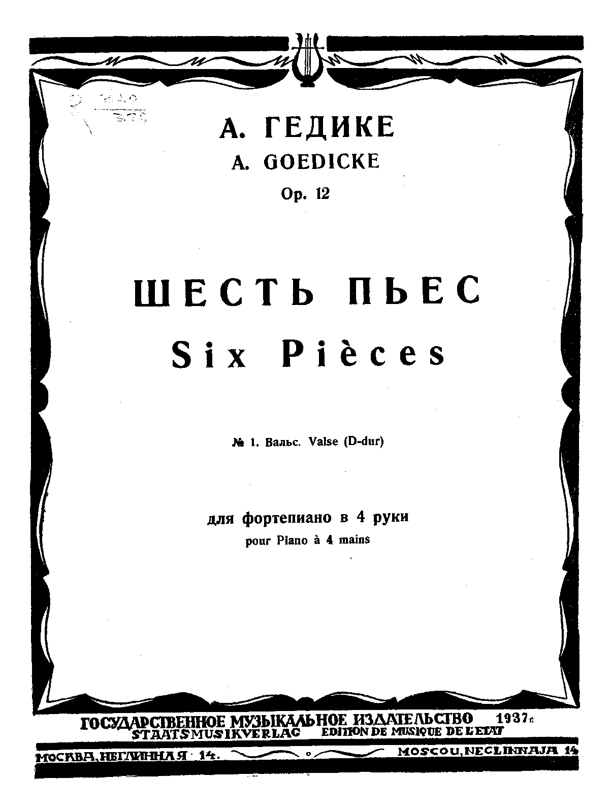 6 Pieces, Op.12 (Gedike, Aleksandr)