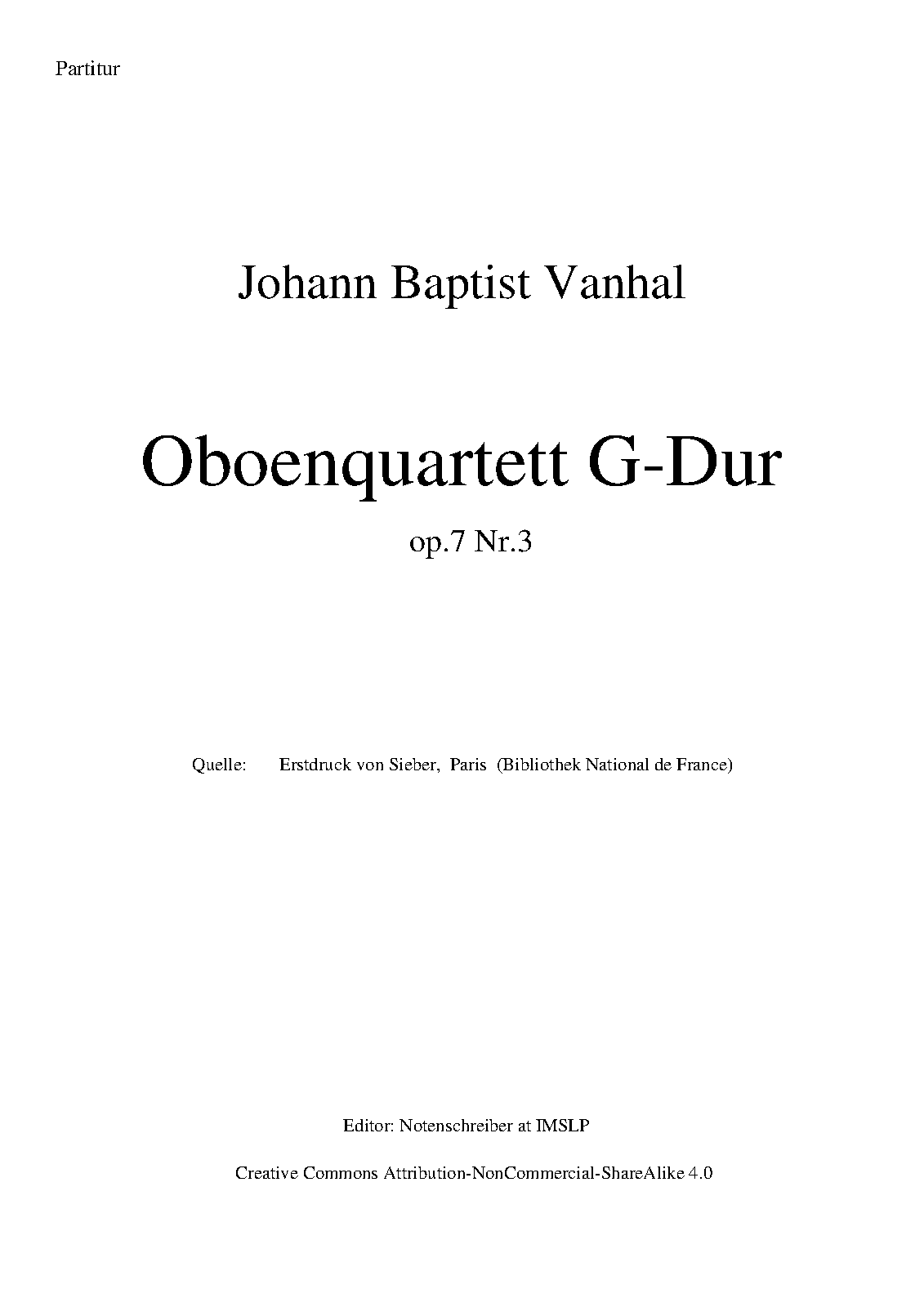 | Alternative. Title | Six Quartetto concertante pour une Flute ou Hautbois, Alto et Basse (Sieber) Six Quartettos for a German Flute or Hoboy, Violon, Tenor and Bass (Napier) |