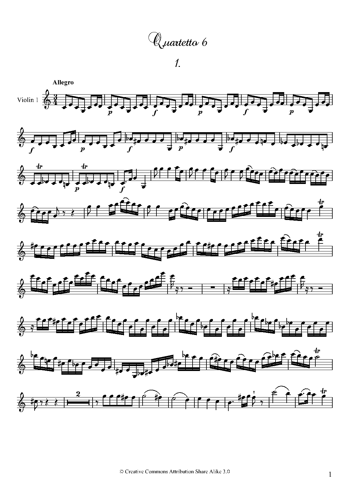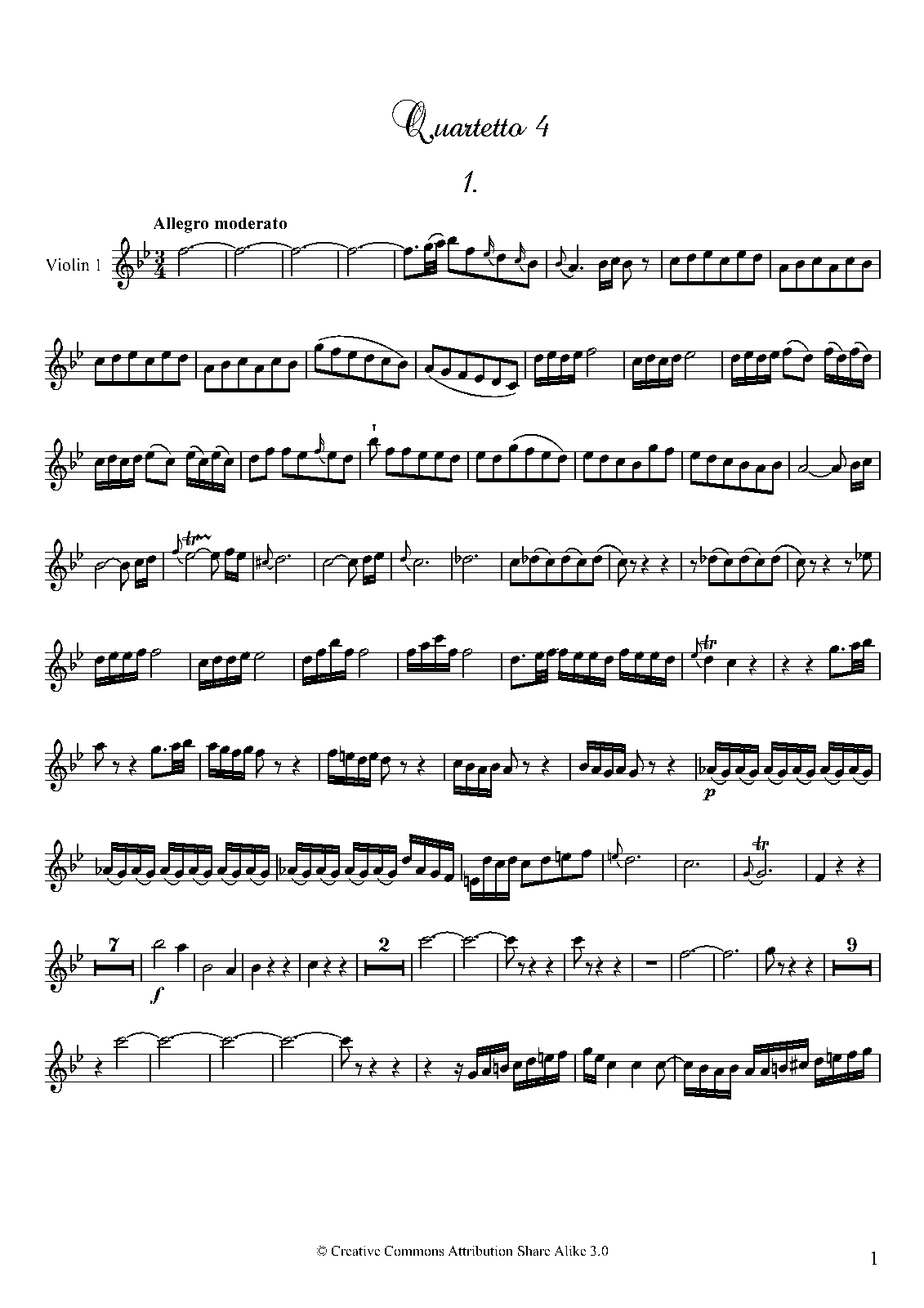 ⇒ 5 more: Quartet No.2 in E major • Quartet No.3 in D major • Quartet No.4 in B♭ major • Quartet No.5 in G major • Quartet No.6 in C major, Title page