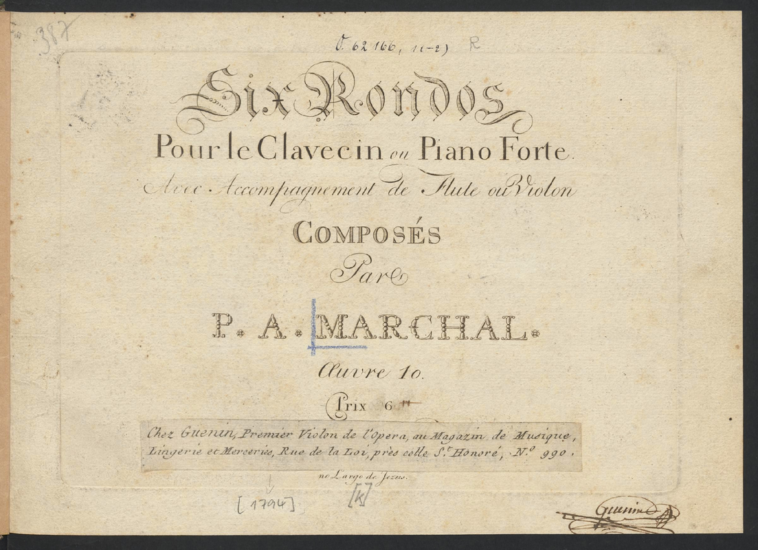 | Alternative. Title | Six Rondos pour le clavecin ou piano forte avec accompagnement de flute ou violon |