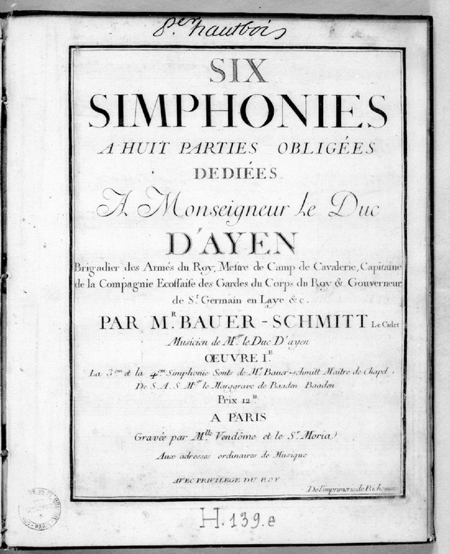 | Alternative. Title | Six simphonies à huit parties obligées |