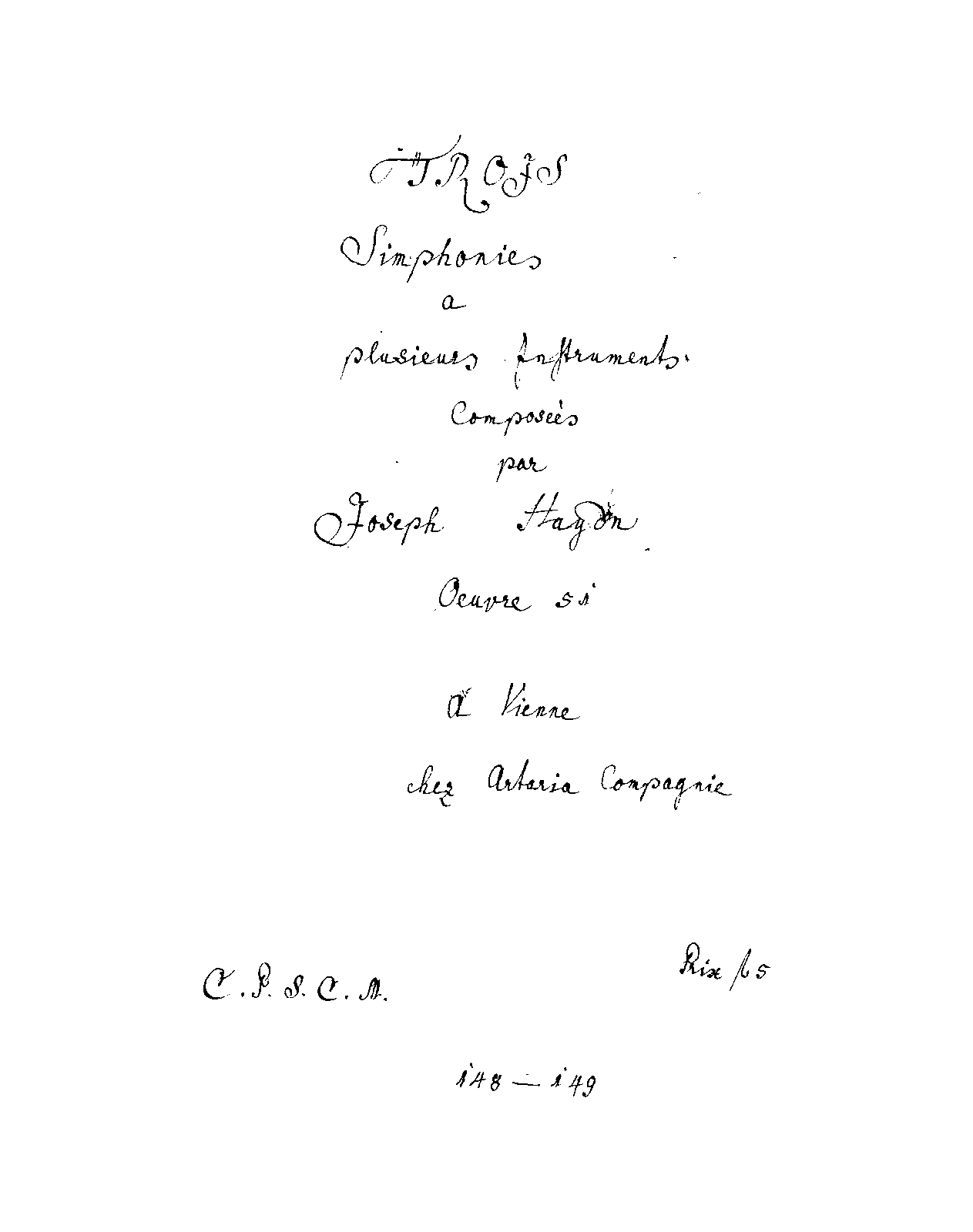 | Extra Information | Commissioned for the Loge Olympique in Paris. Artaria published them in two sets of 3 symphonies each as Opp.51-52, while the French publishers issued all six as Op.51. |