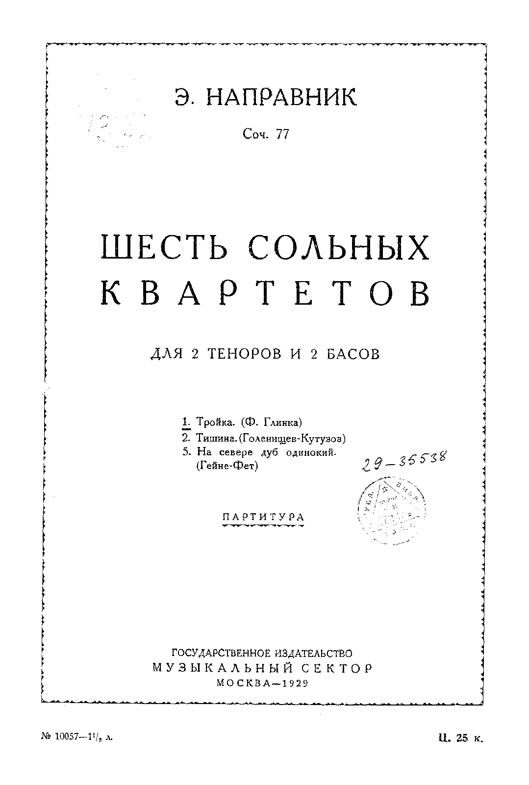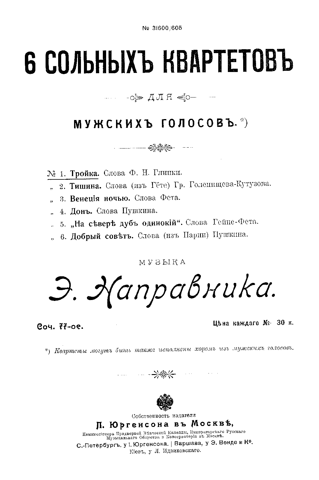 | Genre Categories | Quartets; For 4 voices; For unaccompanied voices; |