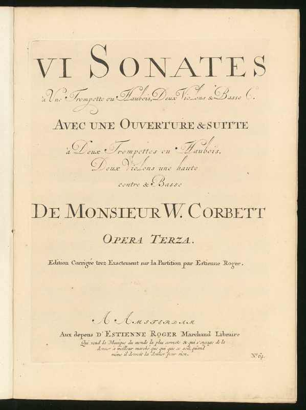 VI Sonates a une Trompette ou Haubois, deux Violons & Basse C. avec une Ouverture & Suitte a deux Trompettes ou Haubois, Deux Violons, une haute contre & Basse