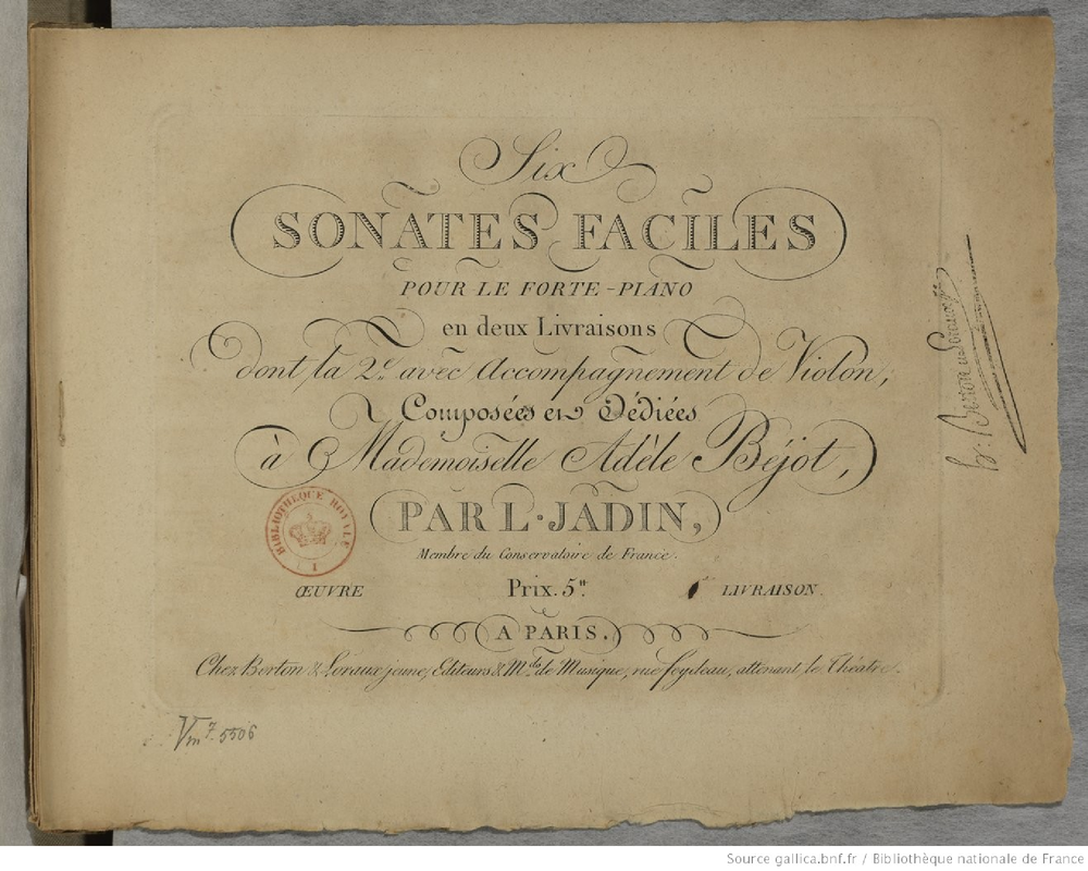 | Alternative. Title | Six Sonates faciles pour le forte-piano en deux livraisons don la 2e. avec accompagnement de Violon |