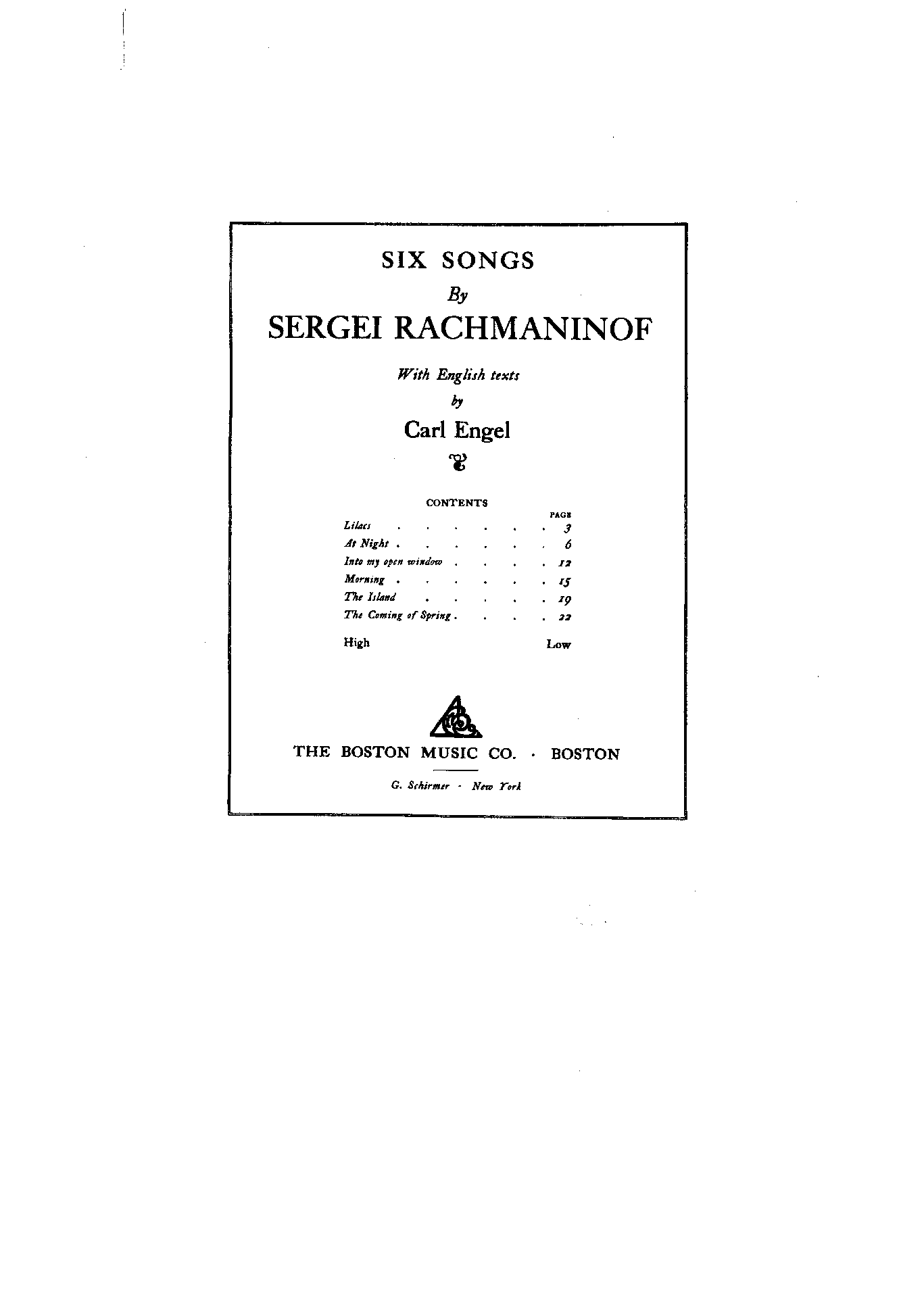 | Genre Categories | Songs; For voice, piano; For voices with keyboard; |