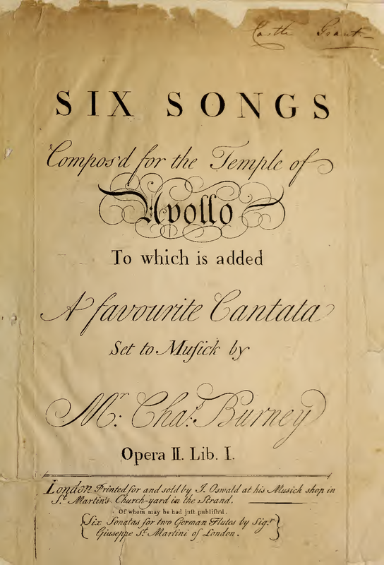 Six Songs compos'd for the Temple of Apollo, to which is added a favourite Cantata set to musick