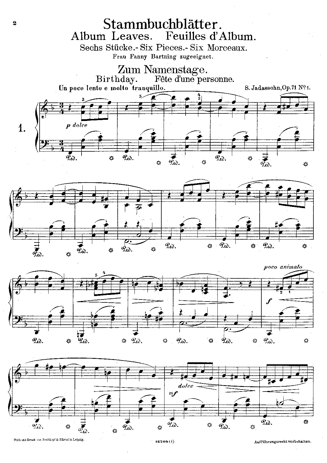 ⇒ 5 more: 2. Gruß in die Ferne • 3. Berceuse • 4. Gavotte • 5. Beim Abschiede • 6. Andenken