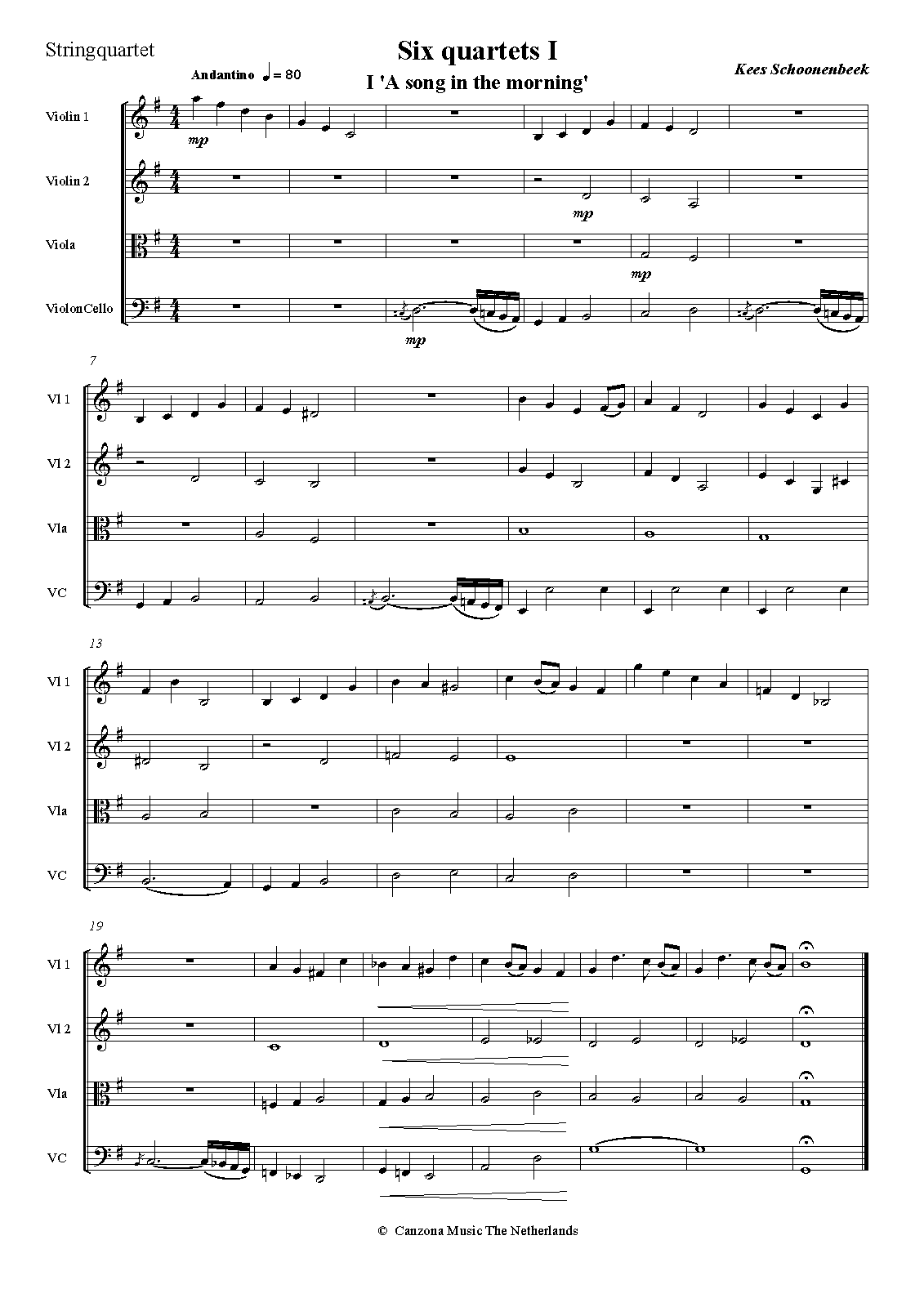 | Genre Categories | Quartets; For 2 violins, viola, cello; Scores featuring the violin; |