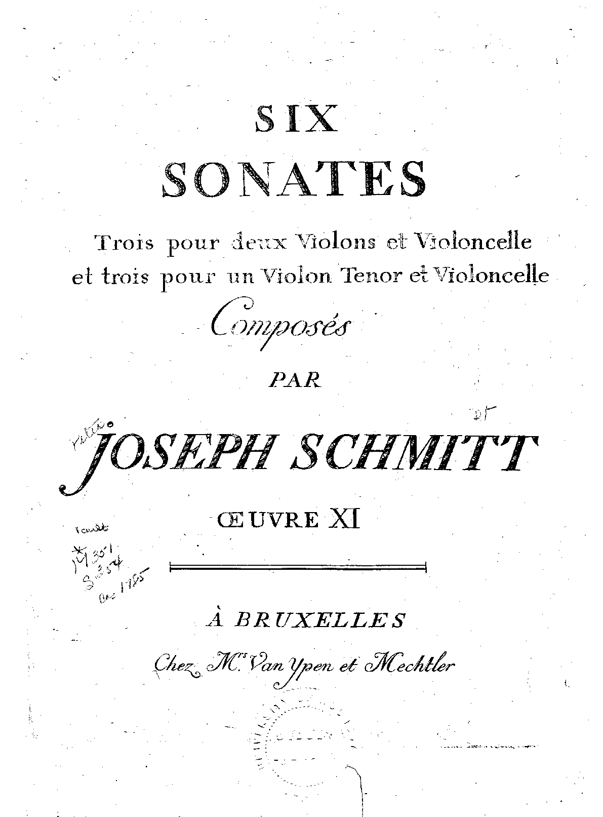 | Alternative. Title | 6 sonates; 3 pour 2 violons et violoncelle et 3 pour un violon, tenor et violoncelle, oeuvre XI |