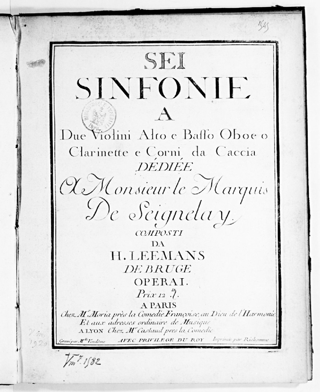 Sei Sinfonie a Due Violini, Alto, e Basso, Oboe o Clarinette [o Flauti Traversi] e Corni da Caccia