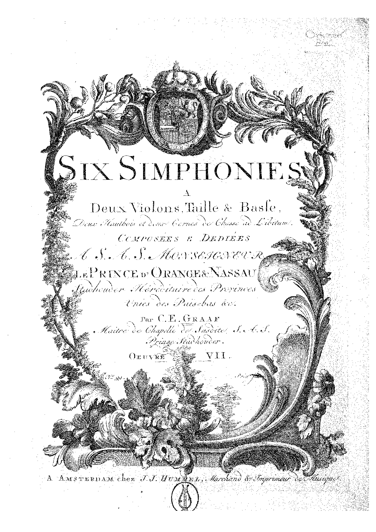 Six Simphonies a Deux Violons, taille & Basse, Deux Hautbouis et deux Cornes de Chasse ad Libitum