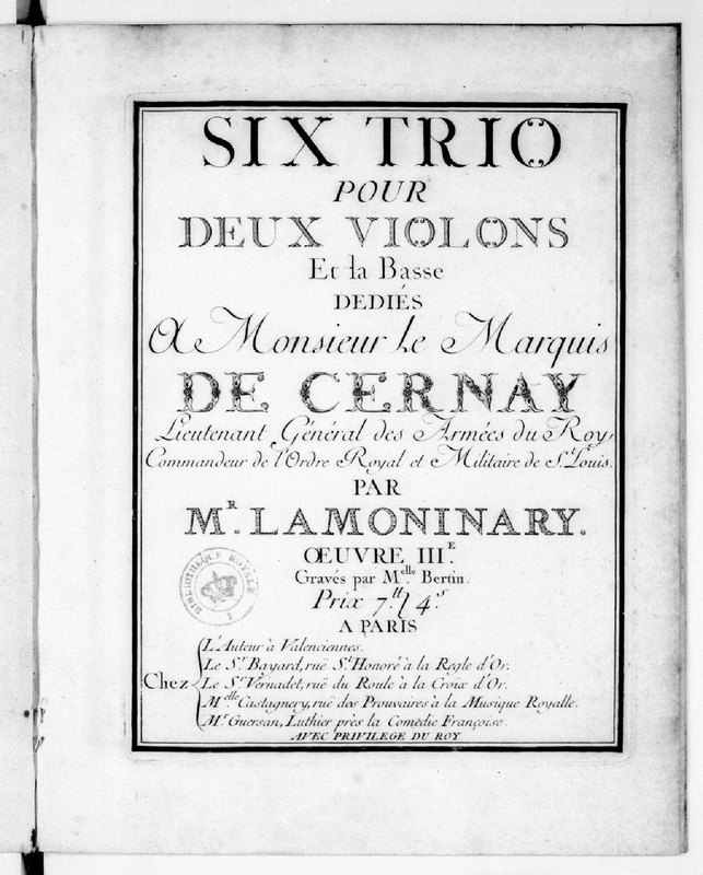 | Alternative. Title | Six Trio pour deux violons et la basse |