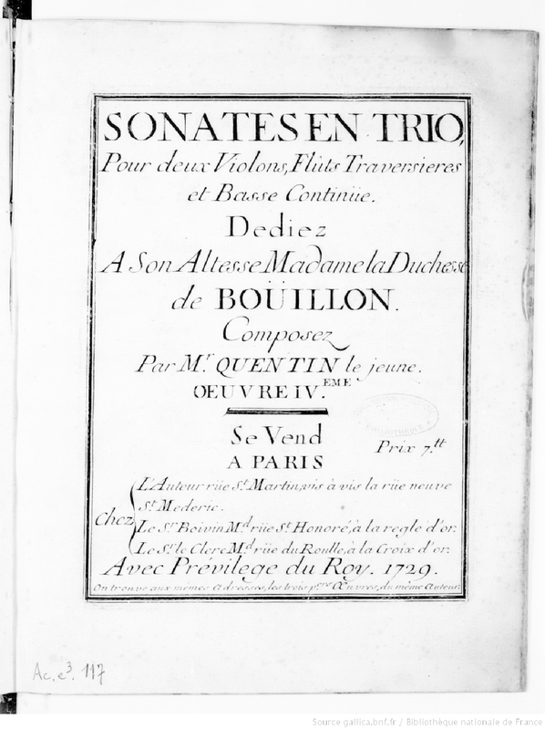 | Alternative. Title | Sonates en trio pour deux violons, [ou] fluts traversieres et basse continue |