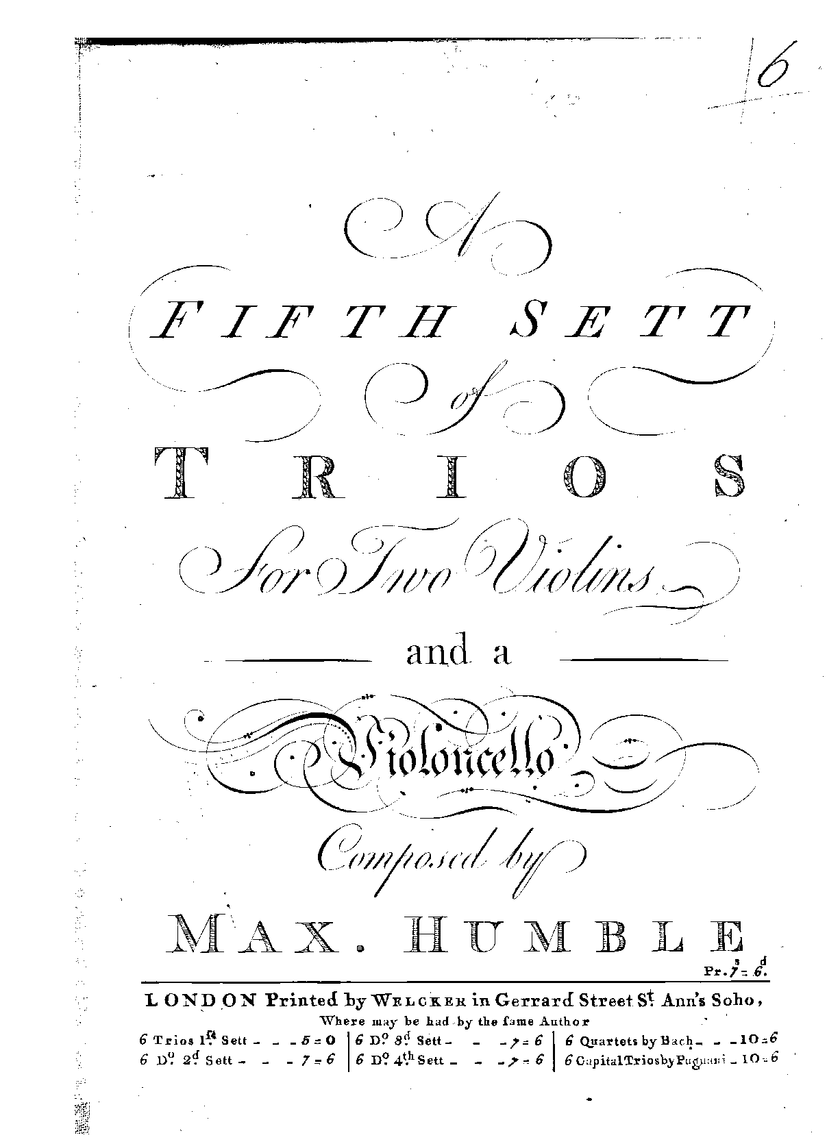 | Work Title | A 5th sett of trios for 2 violins and a violoncello |