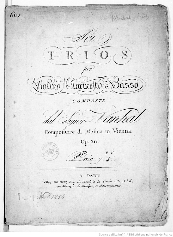 | Instrumentation | clarinet, violin, cello or bassoon (basso on titlepage; cello or bassoon on part) |