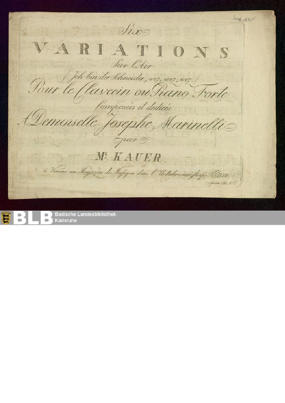 | Alternative. Title | Six Variations sur l'air Ich bin der Schneider, wez, wez, wez, pour le clavecin ou piano forte |