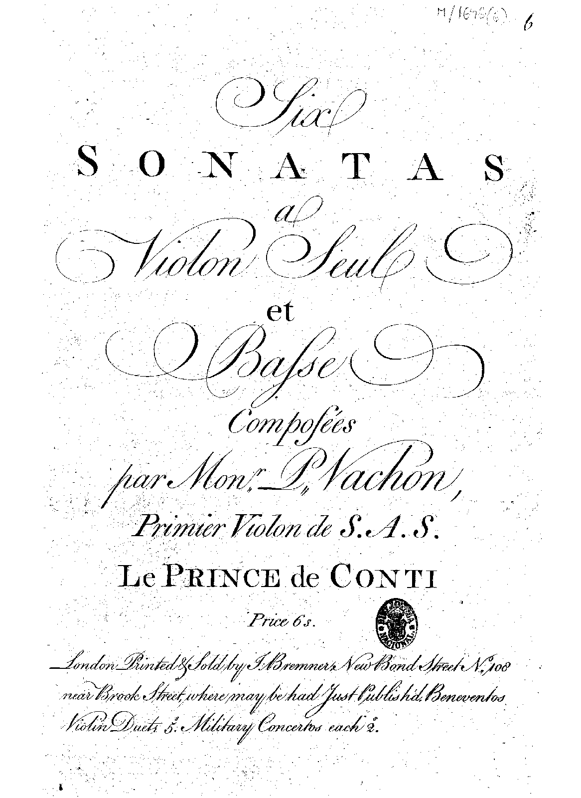 Alternative. Title Six Sonatas a Violon Seul et Basse