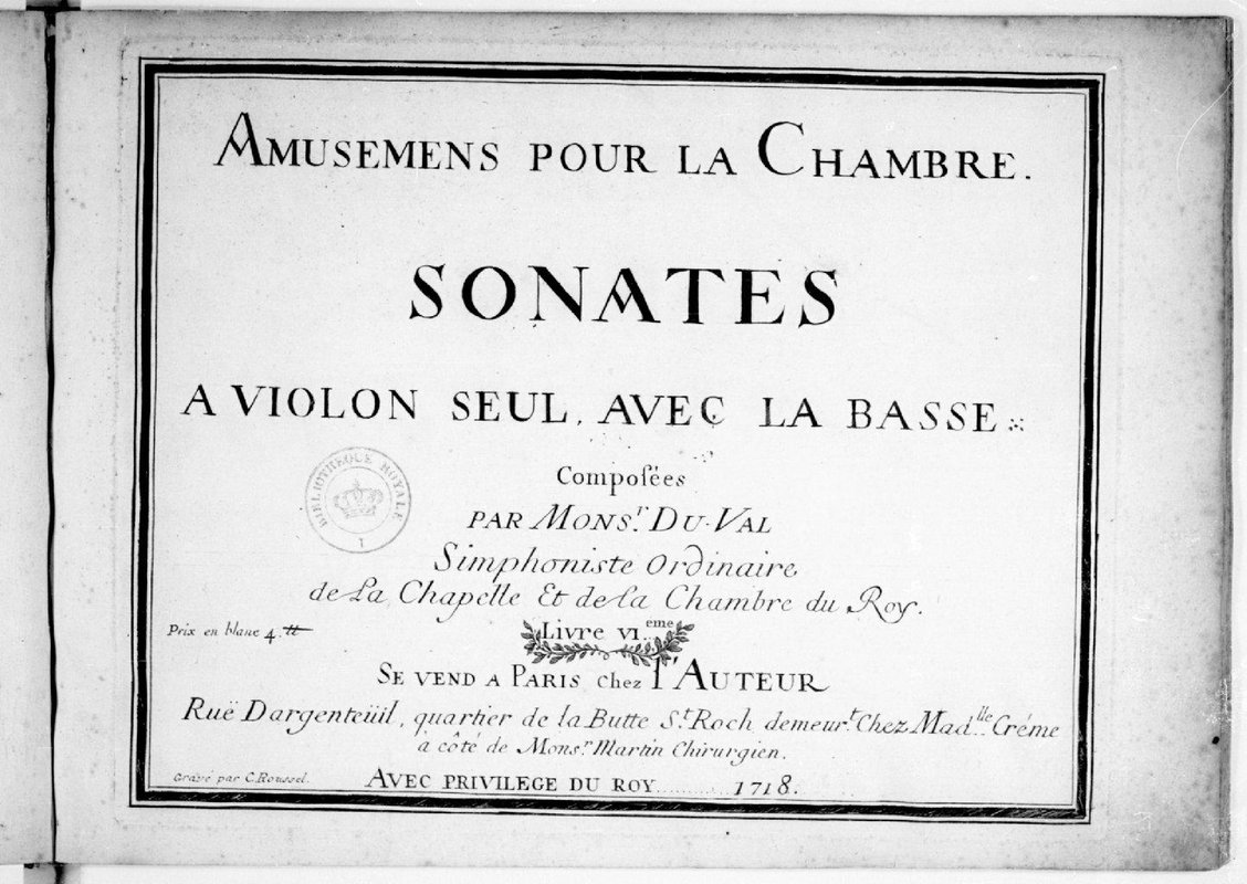 | Alternative. Title | Amusemens pour la Chambre. Sonates a violon seul et la basse ... Livre VIme |
