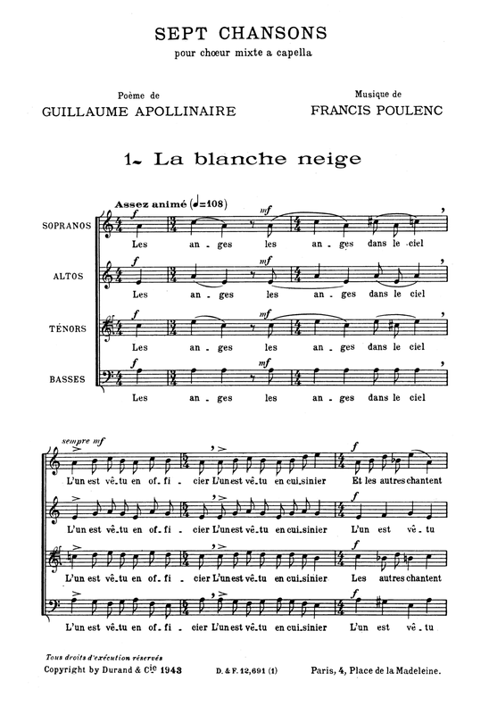 | Work Title | Sept Chansons (pour chœur mixte a cappella) |