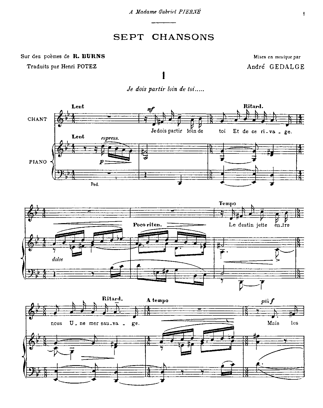 Sept Chansons sur des poèmes de R. Burns, traduits par Henri Potez