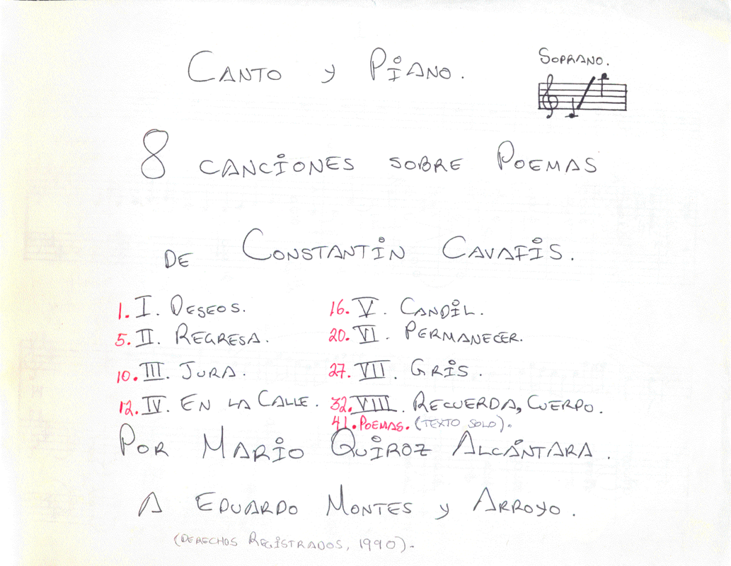 | Alternative. Title | 8 Canciones sobre Poemas de Constantin Cavafis |