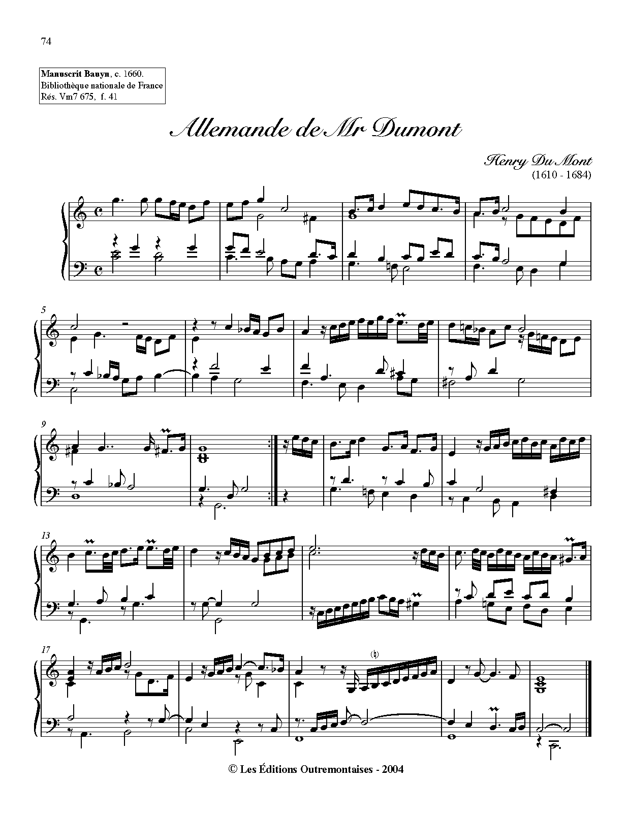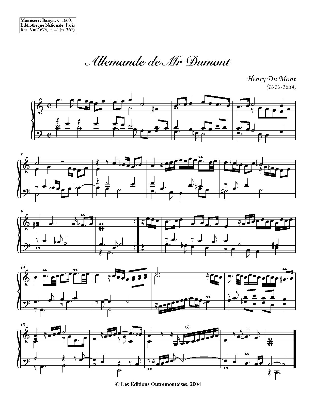 | Composer | Du Mont, Henry |