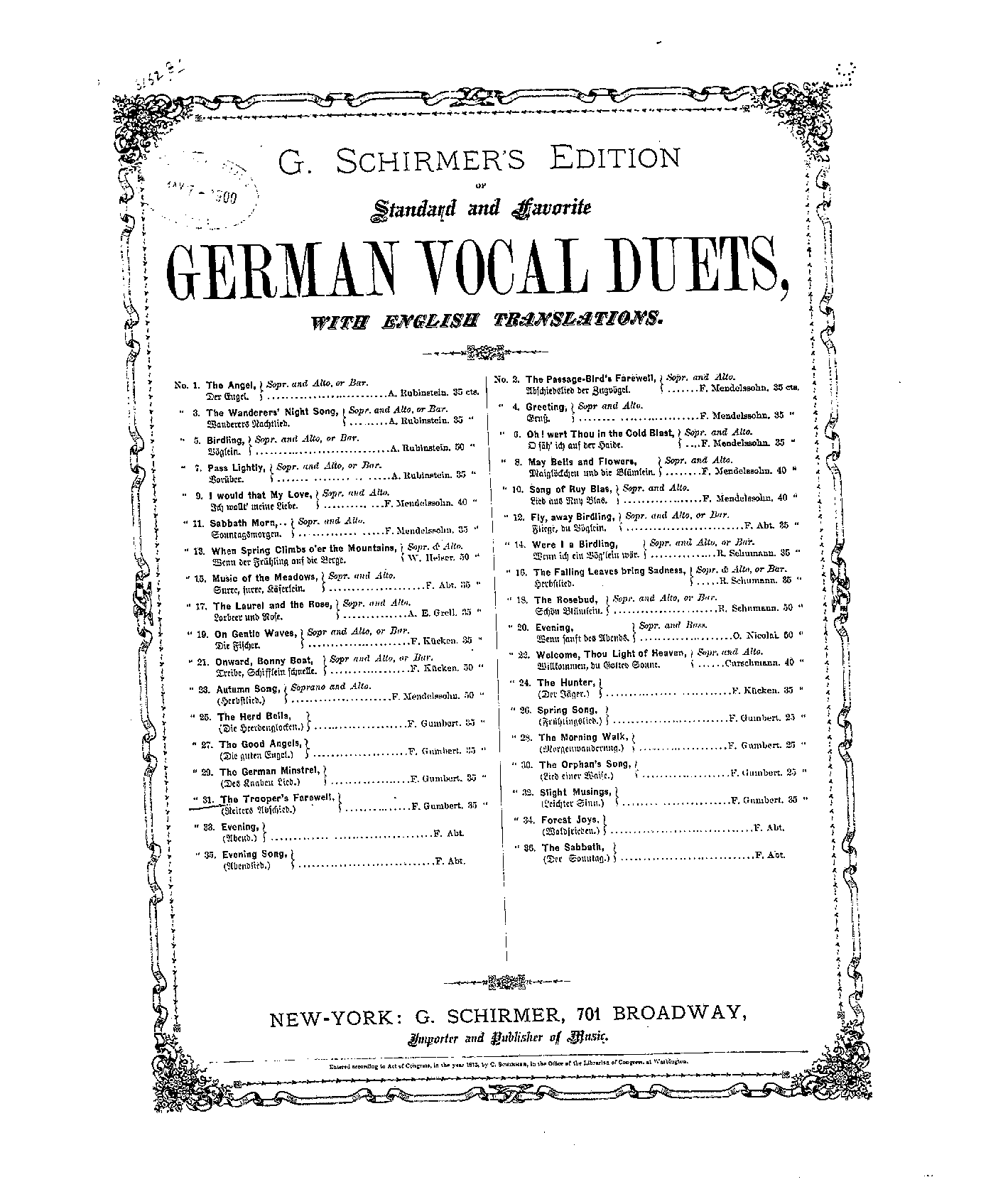 | Genre Categories | Duettinos; Duets; For 2 voices, piano; |