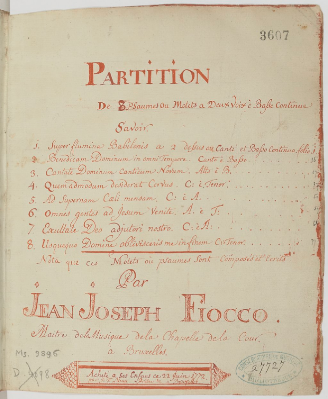 apparently published posthumously by the composer's children. Bibliotheque National de France misattributes these motets to the composer's brother Joseph-Hector Fiocco
