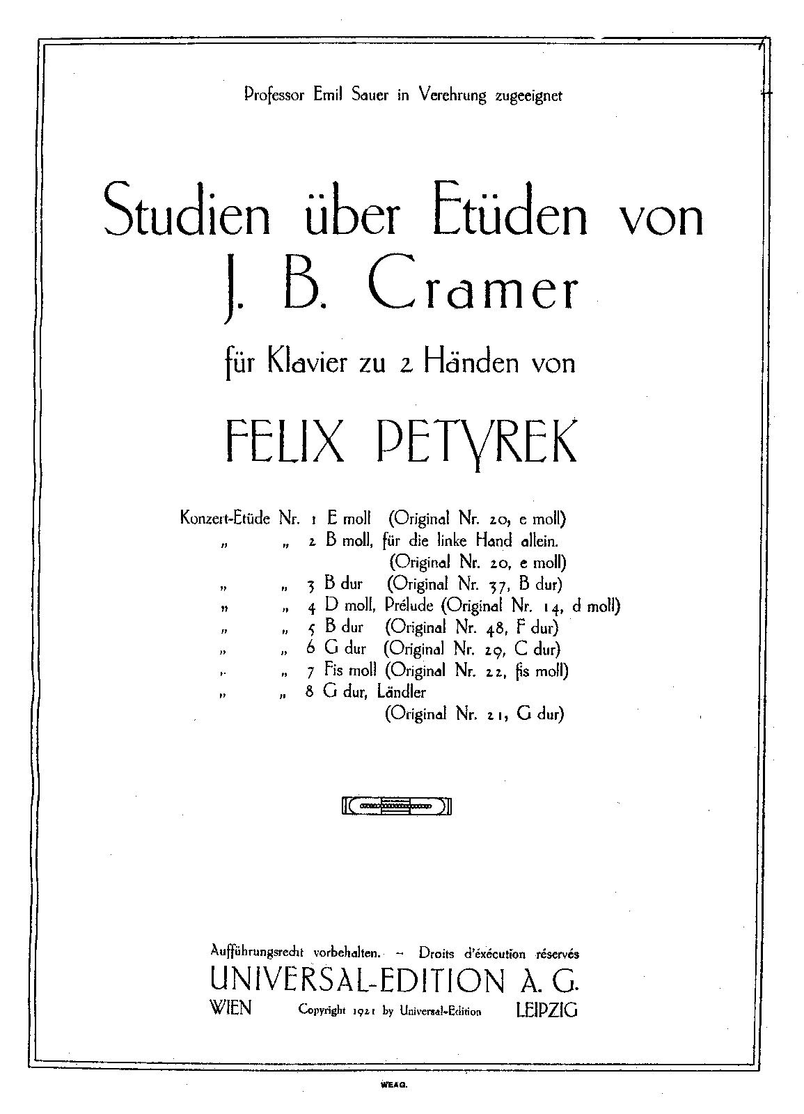 Studien über Etüden von J. B. Cramer: für Klavier zu 2 Händen