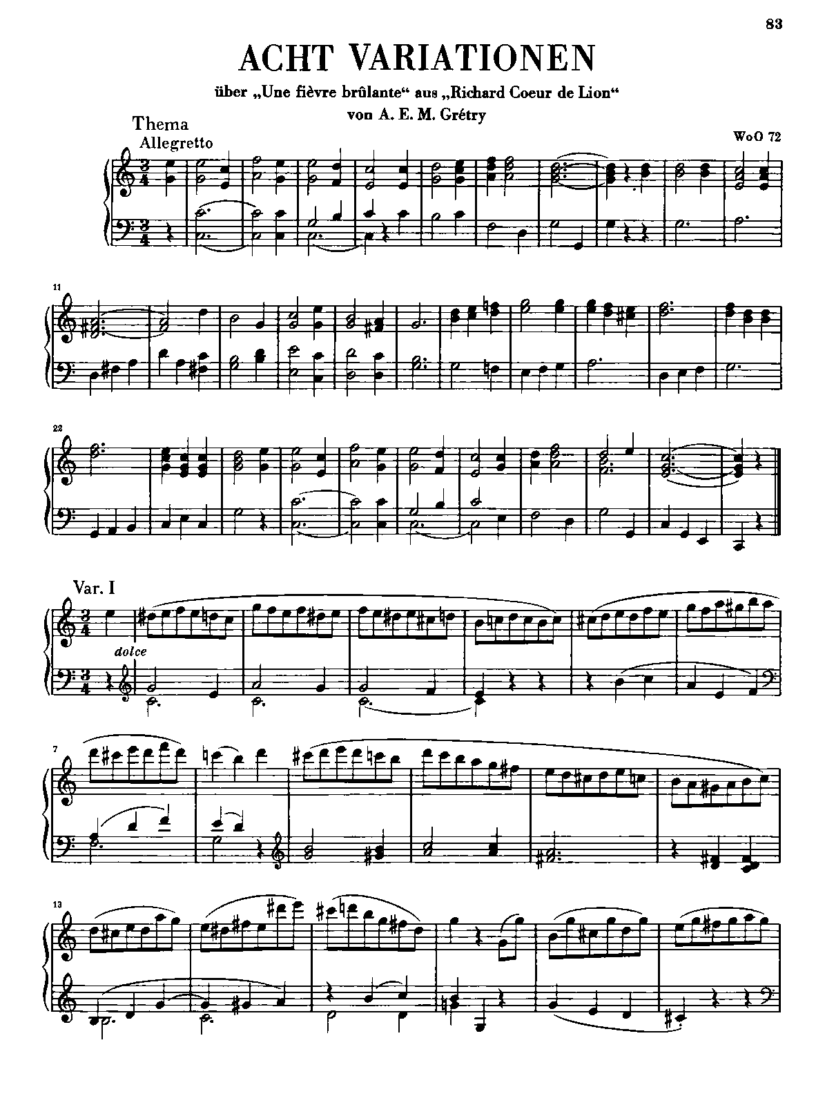 Work Title 8 Variations on 'Une fièvre brûlante' from the opera 'Richard Cœur de Lion' by Grétry WoO 72