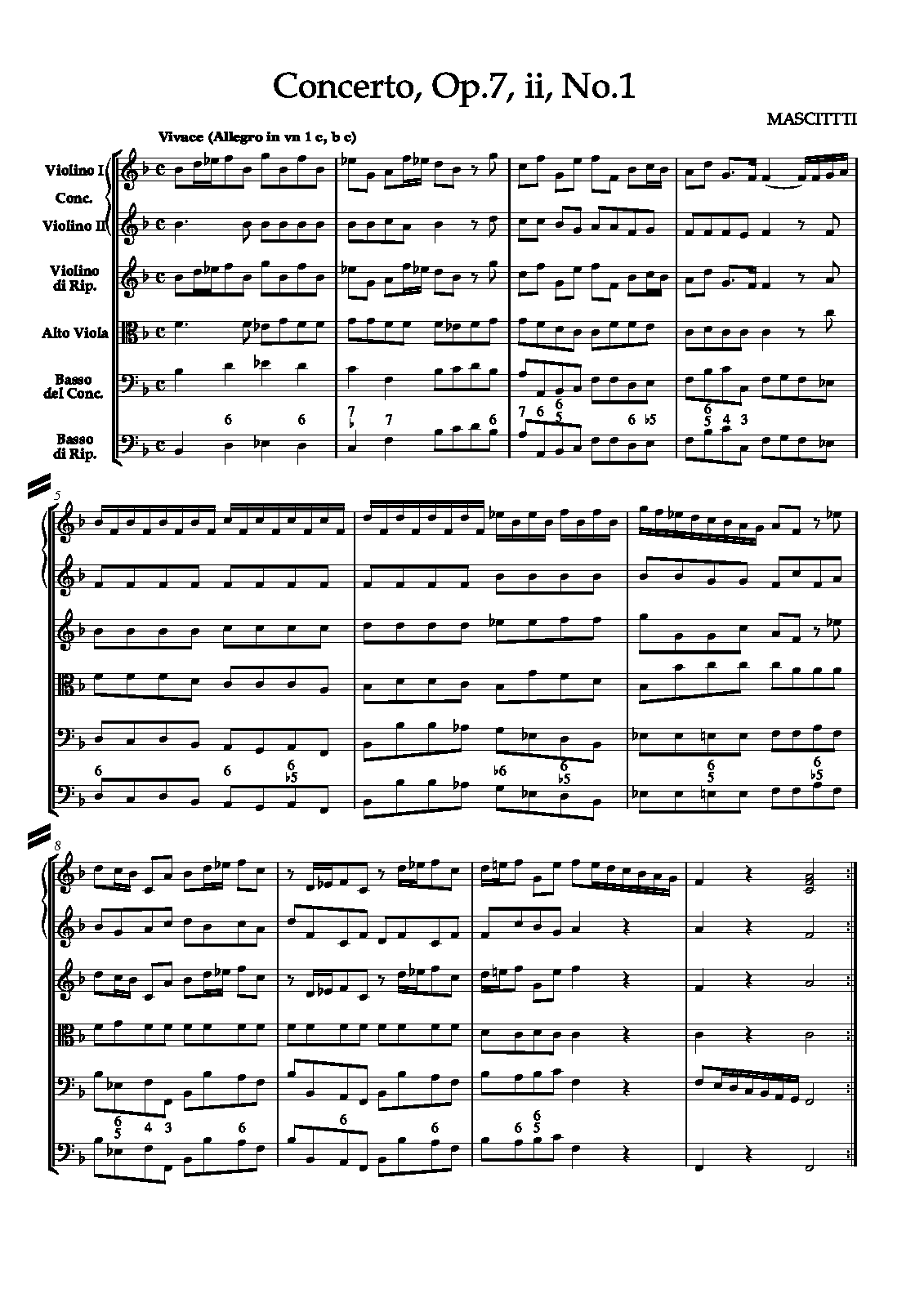 ⇒ 5 more: Violin 2 concertino • Violin ripieno • Viola • Basso (Cello) concertino • Continuo