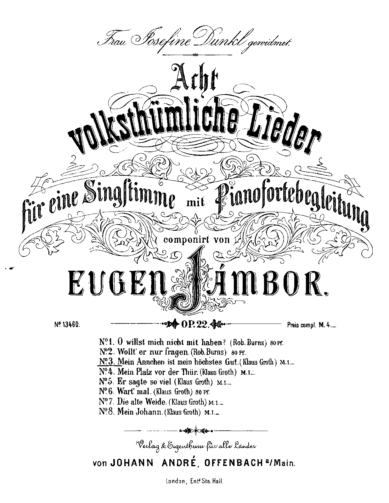 | Dedication | Frau Josefine Dunkl gewidmet (possibly Josepha Dunkl née Josepha Grinzweil (d.1911)) |