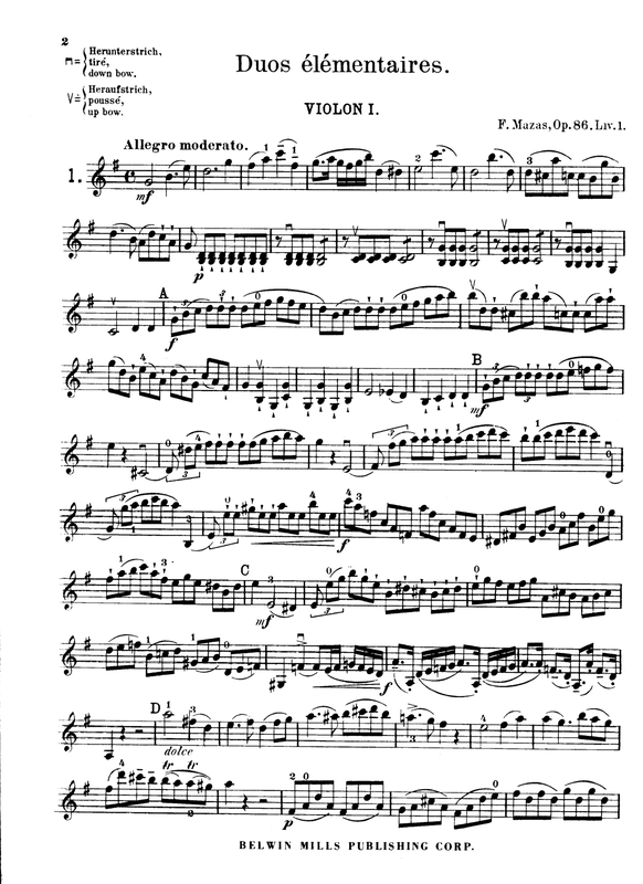 | Mazas Violin Duos A practical guide for violinists The 14 duo collections published mostly in sets of 6 (in two volumes (cahiers, Hefte) of three works each) by Litolff, Peters and others (1850-1900) with Heim's grading system Heim 1-4: 1st position, 5-7: 1st to 3rd position, 8-10 all positions easy, 11-15 all positions difiicult, 16-20 all positions very difficult | |||