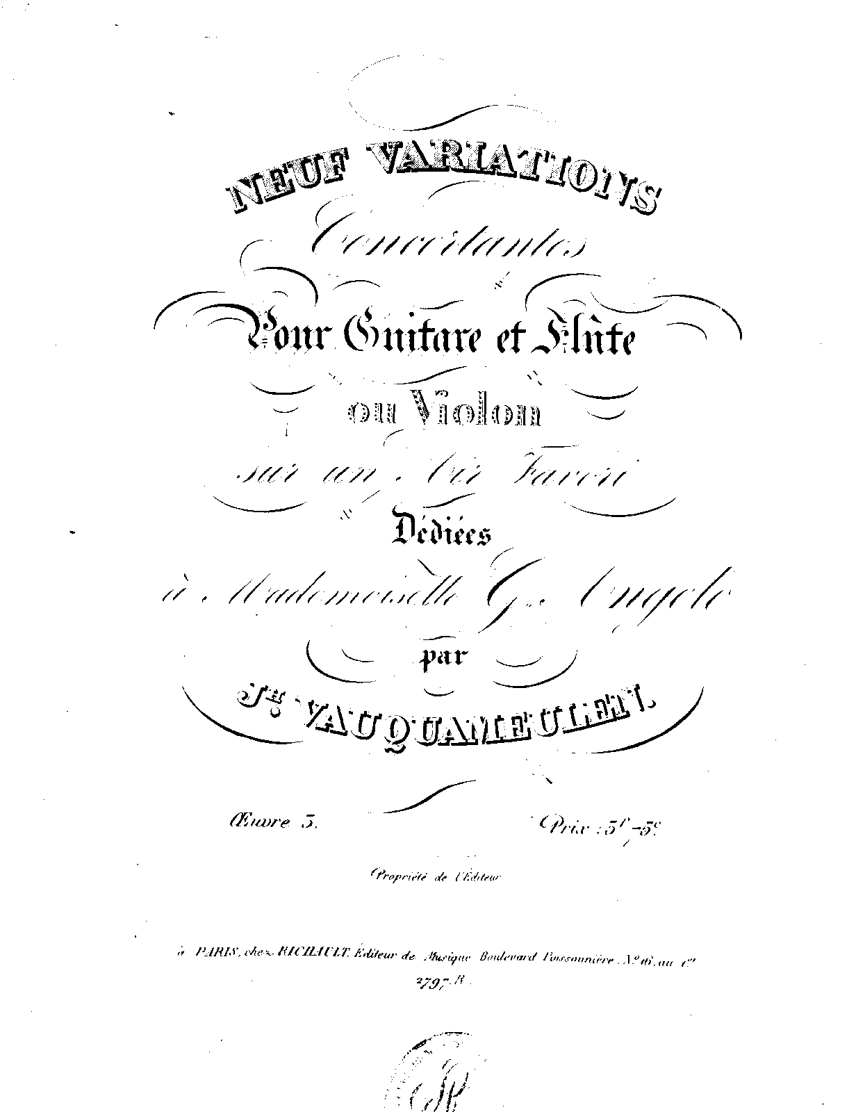 | Work Title | 9 Variations concertantes pour Guitare et et Flûte ou violon sur un air favori |