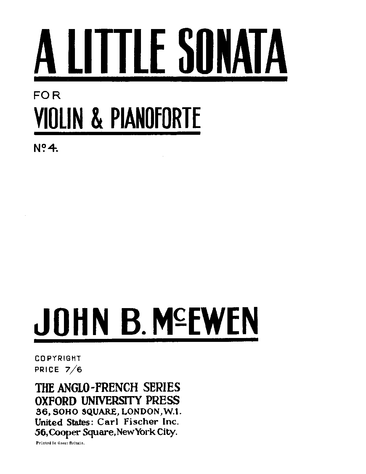 A Little Sonata (no. 4) for Violin and Piano