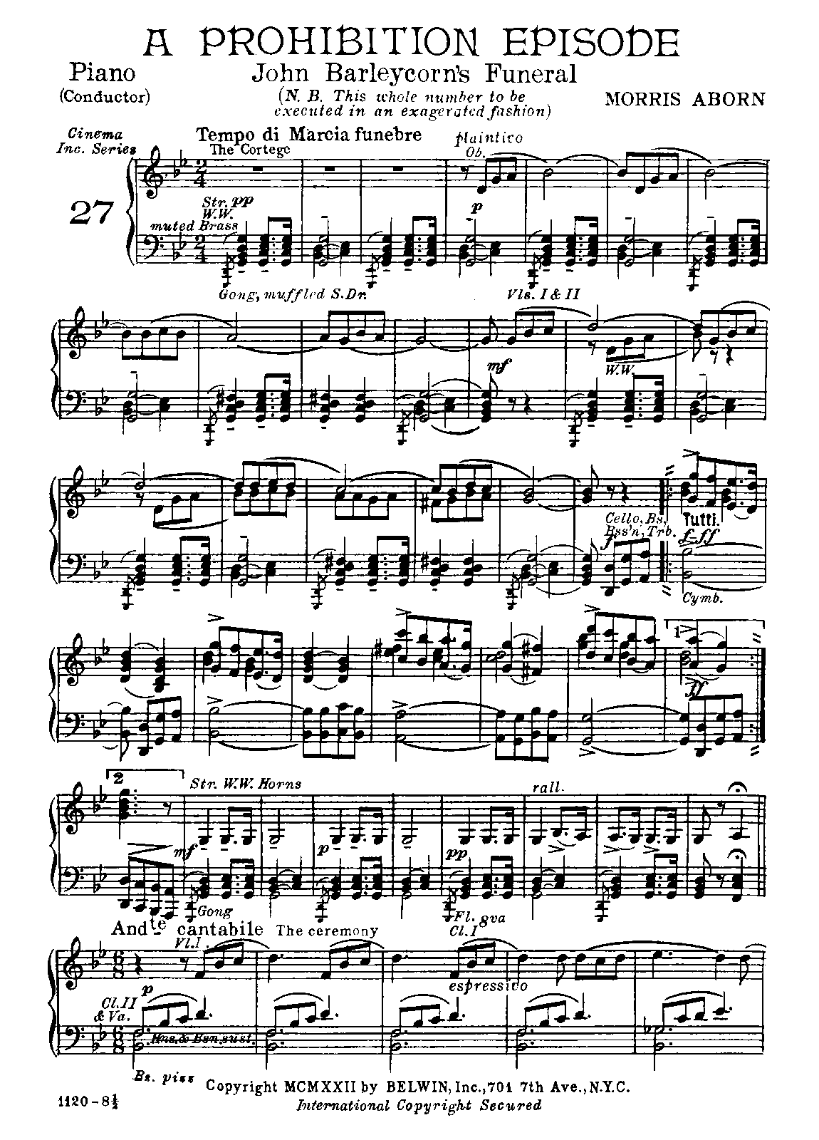 | Extra Information | Intended for use as accompaniment for silent movies. Published under the pseudonym Morris Aborn. |