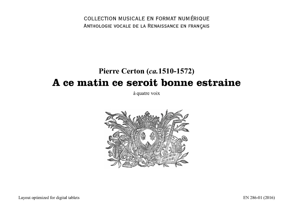 | Work Title | A ce matin ce seroit bonne estraine |