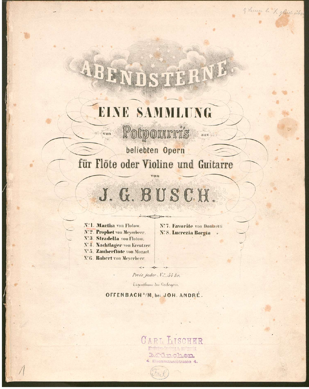 | Alternative. Title | Eine Sammlung von Potpourris aus beliebten Opern für Flöte oder Violine und Guitarre |