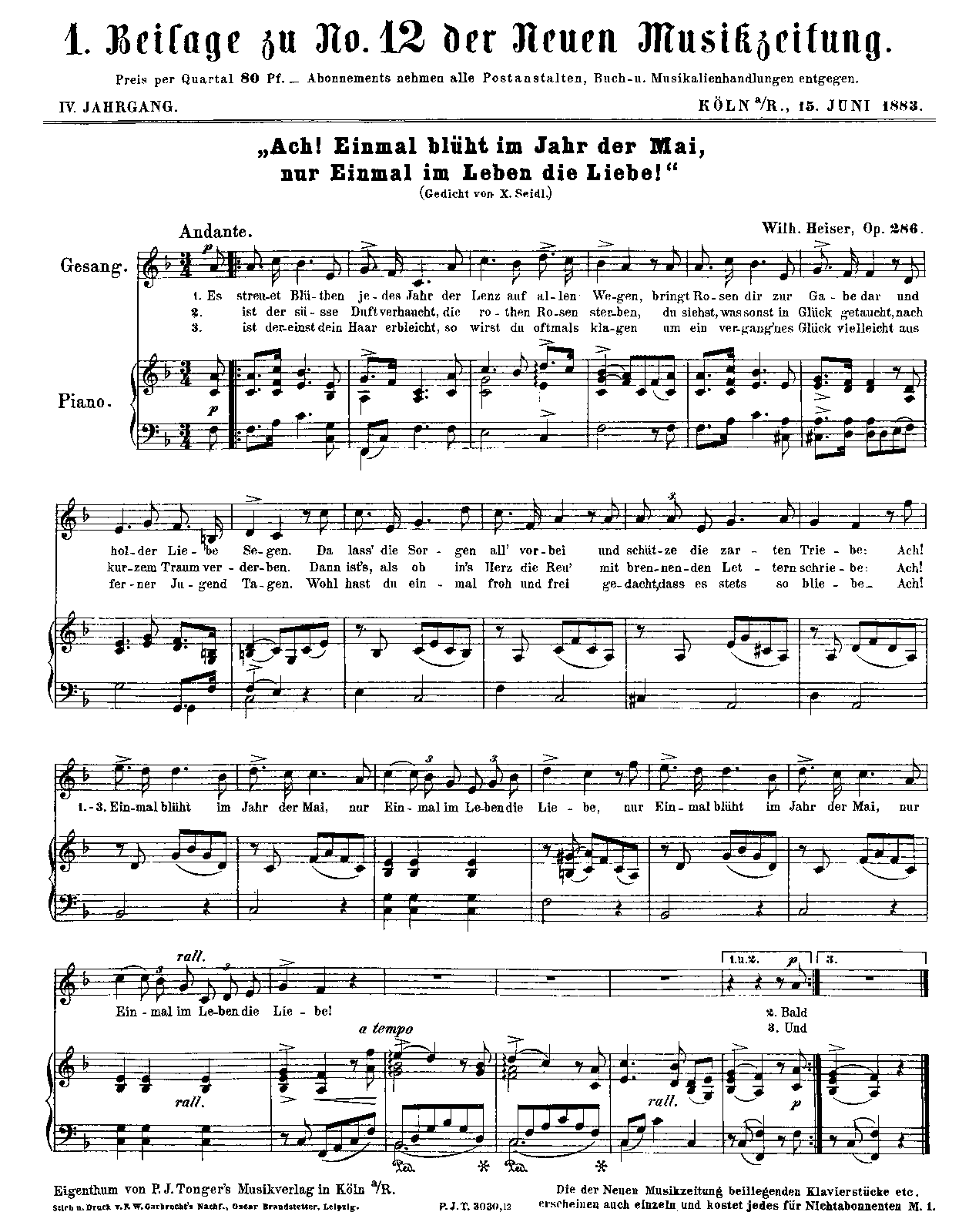 | Alternative. Title | Ach! Einmal blüht im Jahr der Mai, nur Einmal im Leben die Liebe! |