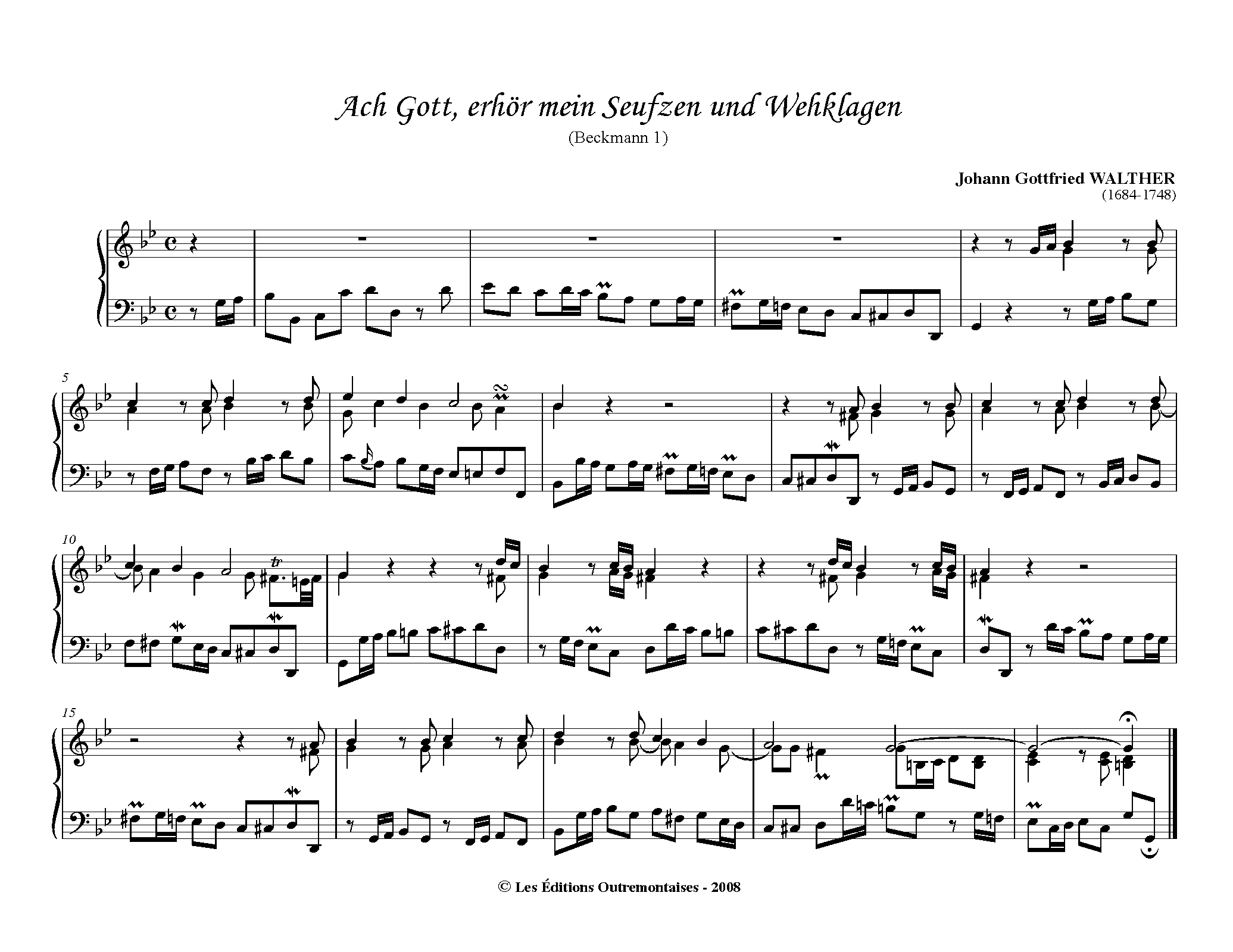 | Work Title | Ach Gott, erhör mein Seufzen und Wehklagen |