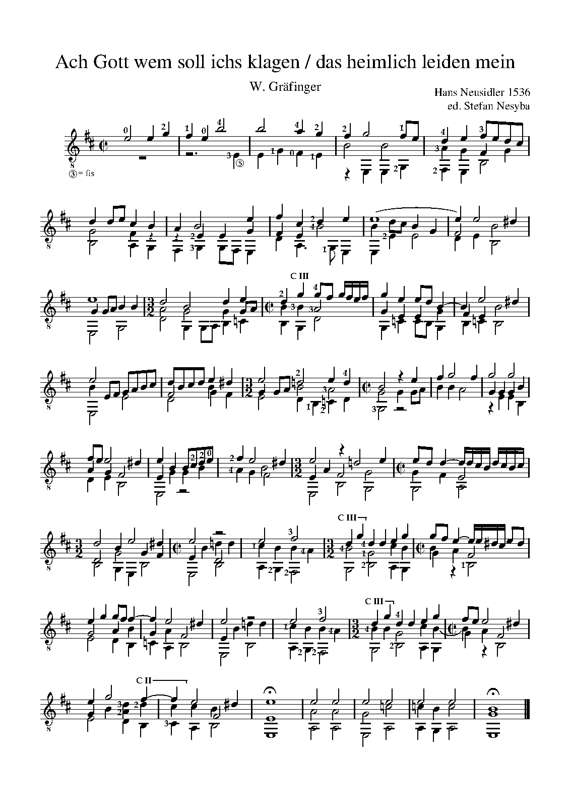 | Work Title | Ach Gott wem soll ichs klagen das heimlich leiden mein |